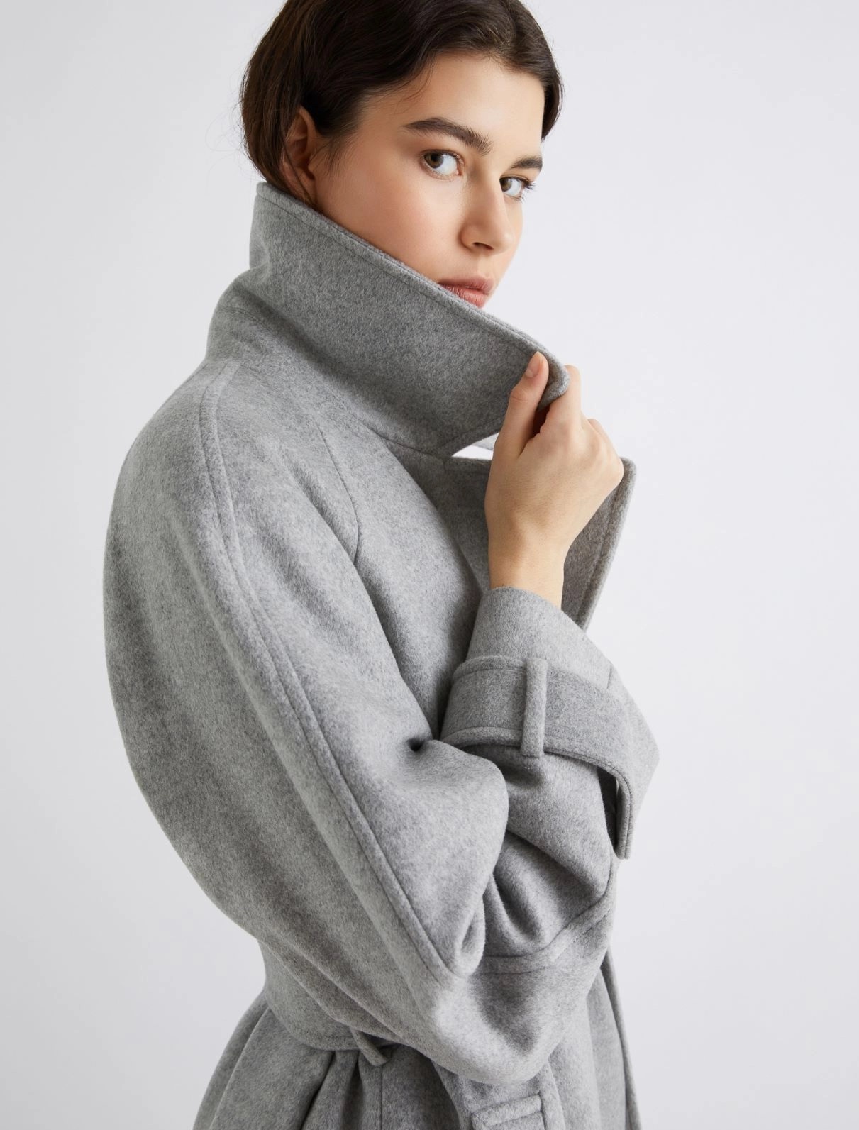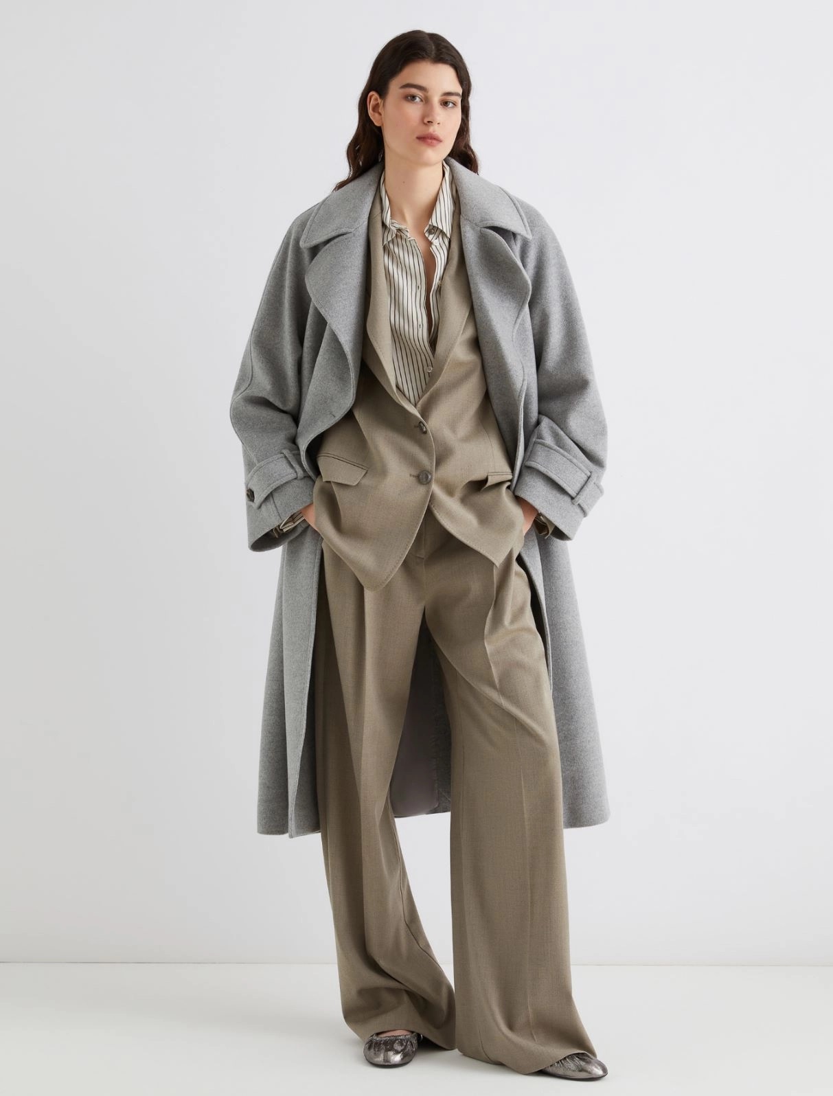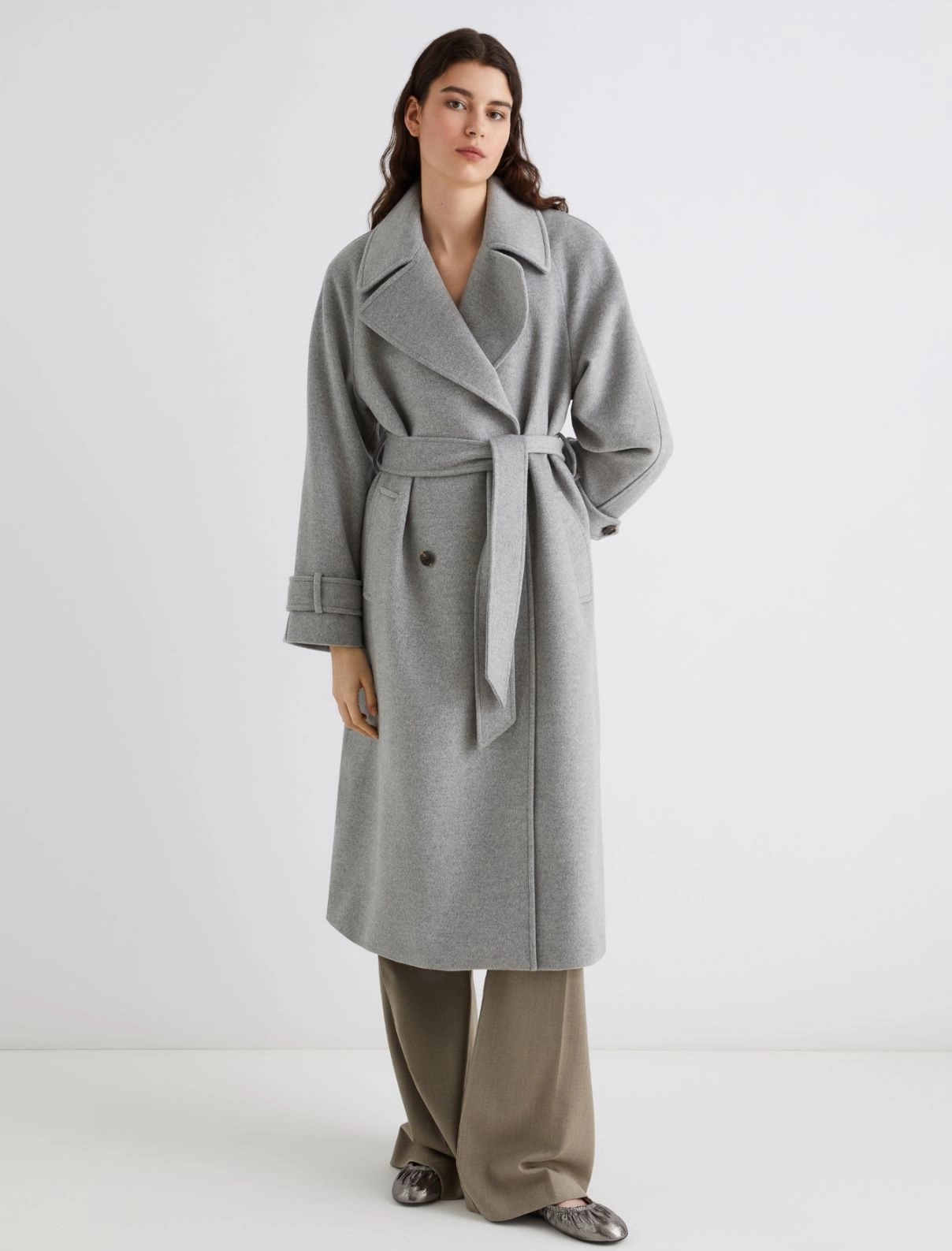 Παλτό απο αγνό μαλλί & κασμίρ / γιακάς με πέτο / διπλό κούμπωμα & ζώνη / raglan μανίκια / πλαινές τσέπες με ρέλι / φόδρα / tab στις μανσέτες / κεντρικό άνοιγμα στο πίσω μέρος / ίσια γραμμή