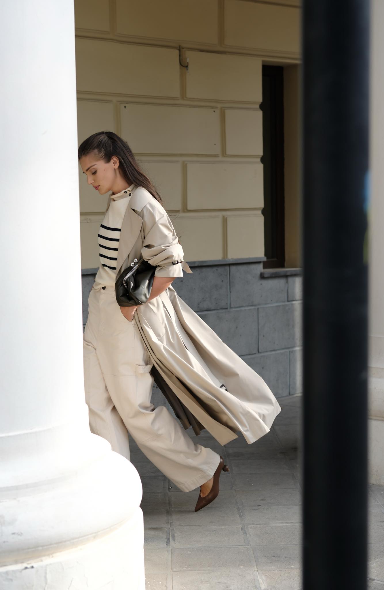 Καμπαρντίνα εξαιρετικά ελαφριά, αδιάβροχη σε χαλαρή γραμμή / μεγάλος γιακάς / μανίκια ρεγκλάν με tabs στις μανσέτες / αποσπώμενη ζώνη με δερμάτινη αγκράφα / πλαινές τσέπες με ρέλι / κεντρικό άνοιγμα πίσω / half-επένδυση με τεχνική λεπτομέρεια ταινίας / logo WEEKEND Max Mara εσωτερικά / μακρύ μήκος