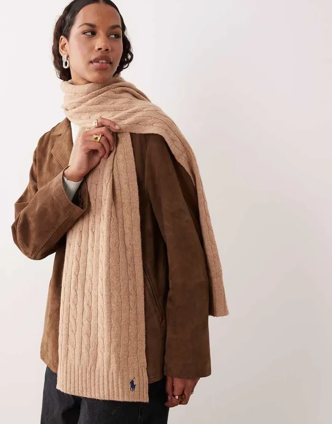 Κασκόλ απο μαλακό μαλλί & κασμίρι με cable-πλέξη / rib τελείωμα / κεντημένο Pony logo