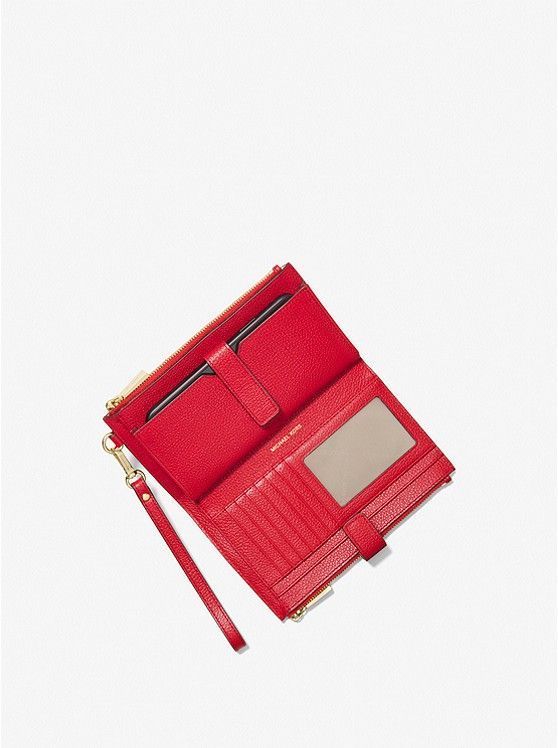 Πορτοφόλι / 1 θήκη για χαρτονομίσματα / 2 θήκες με φερμουάρ / 1 θήκη για smartphone / 2 ανοιχτές θήκες / 7 θήκες για κάρτες / αποσπώμενο χερούλι / snap κούμπωμα / χρυσό πλακέ logo / gift box συσκευασία