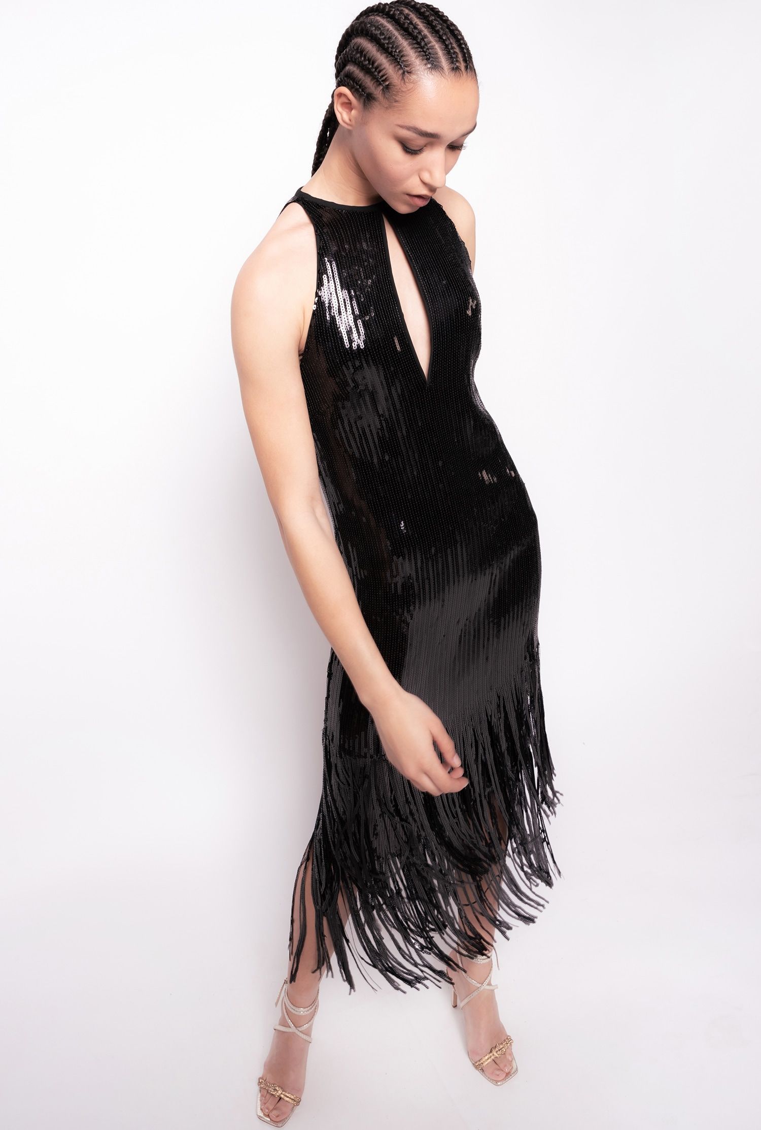 Φόρεμα μακρύ με κεντημένες παγέτες & κρόσσια στο τελείωμα / αμάνικο / στρογγυλη λαιμόκοψη με V-λαιμό / φόδρα / αποτελεί μέρος της συλλογής για πάρτι "Dress to Impress"