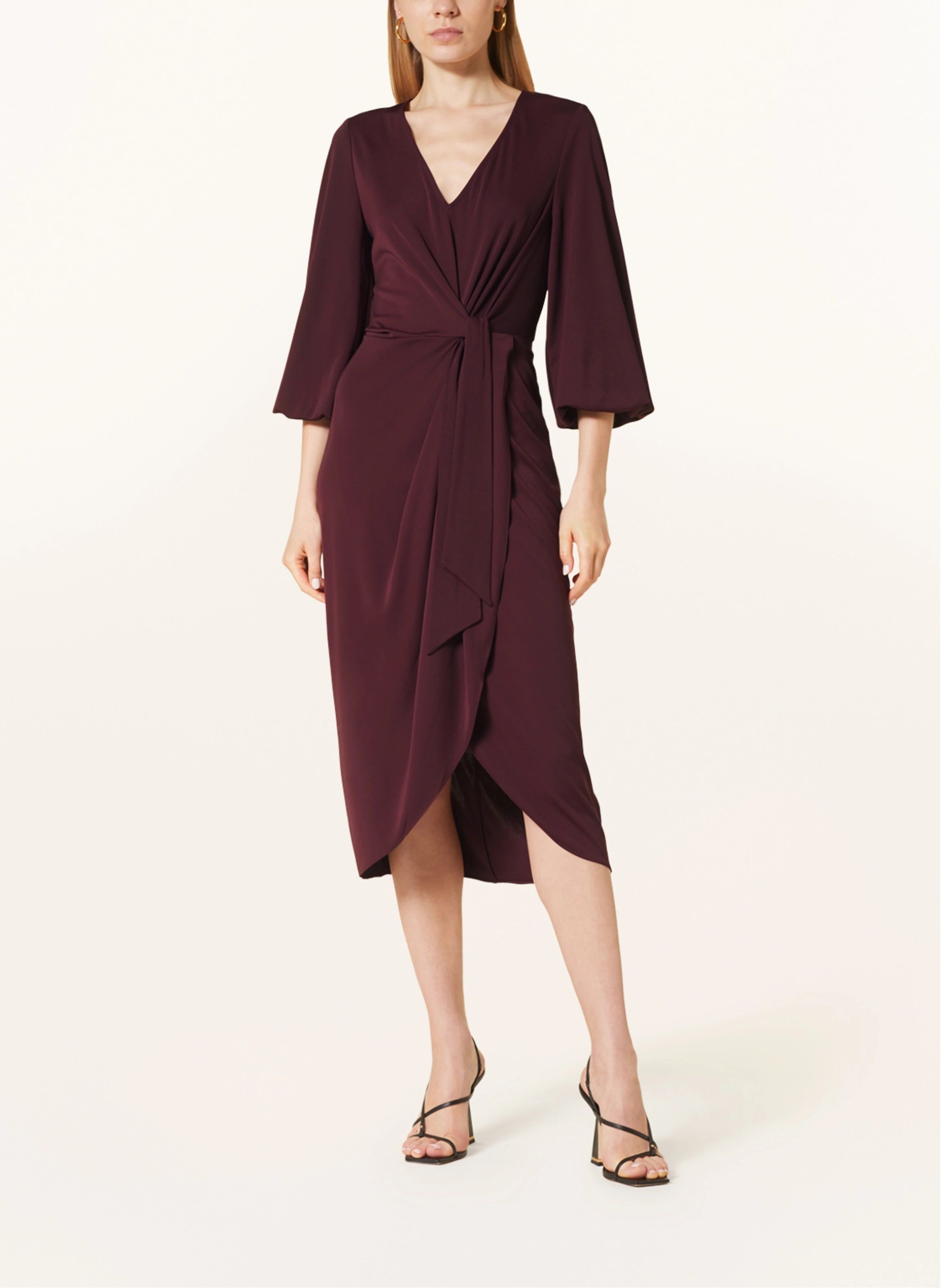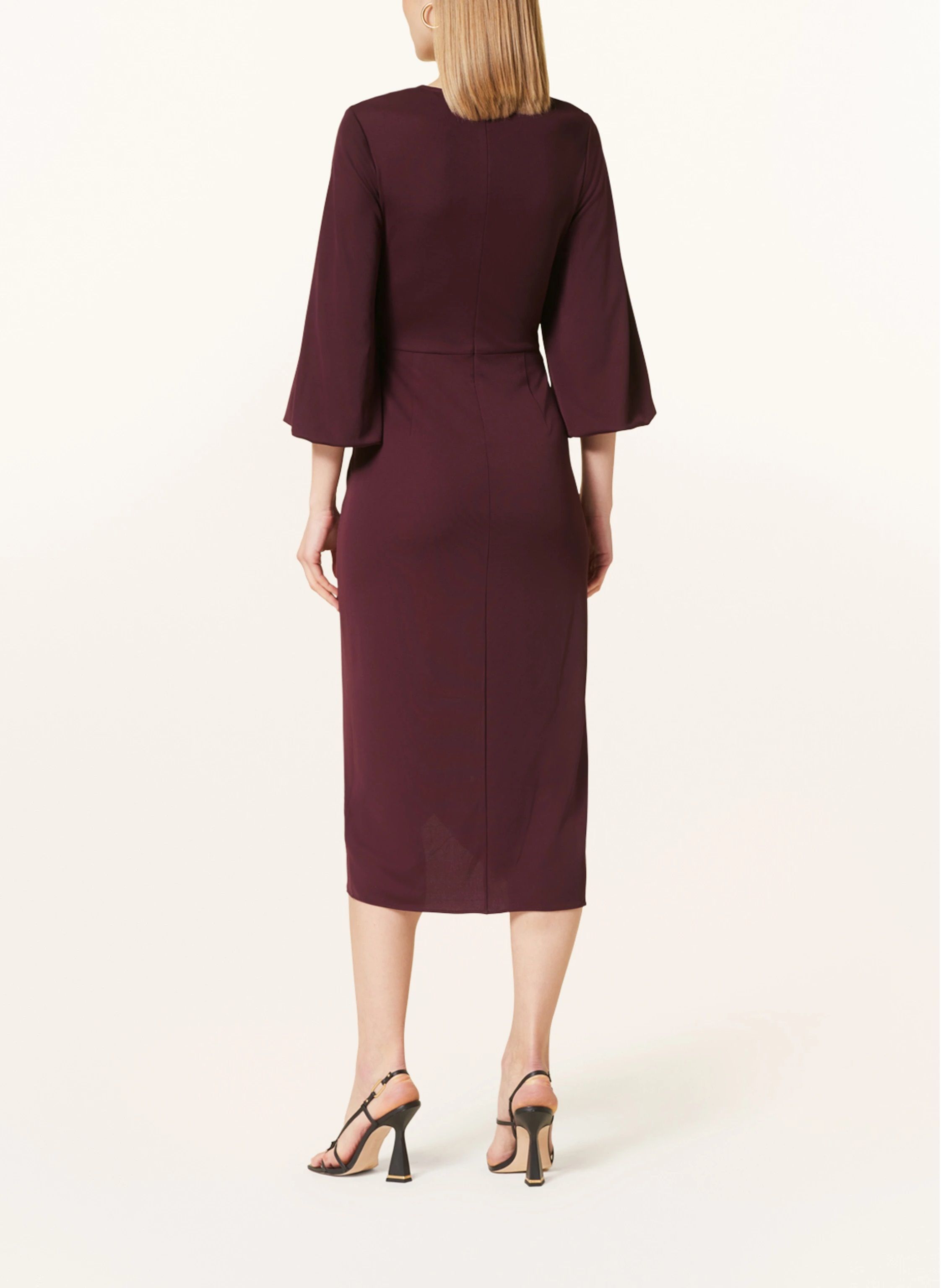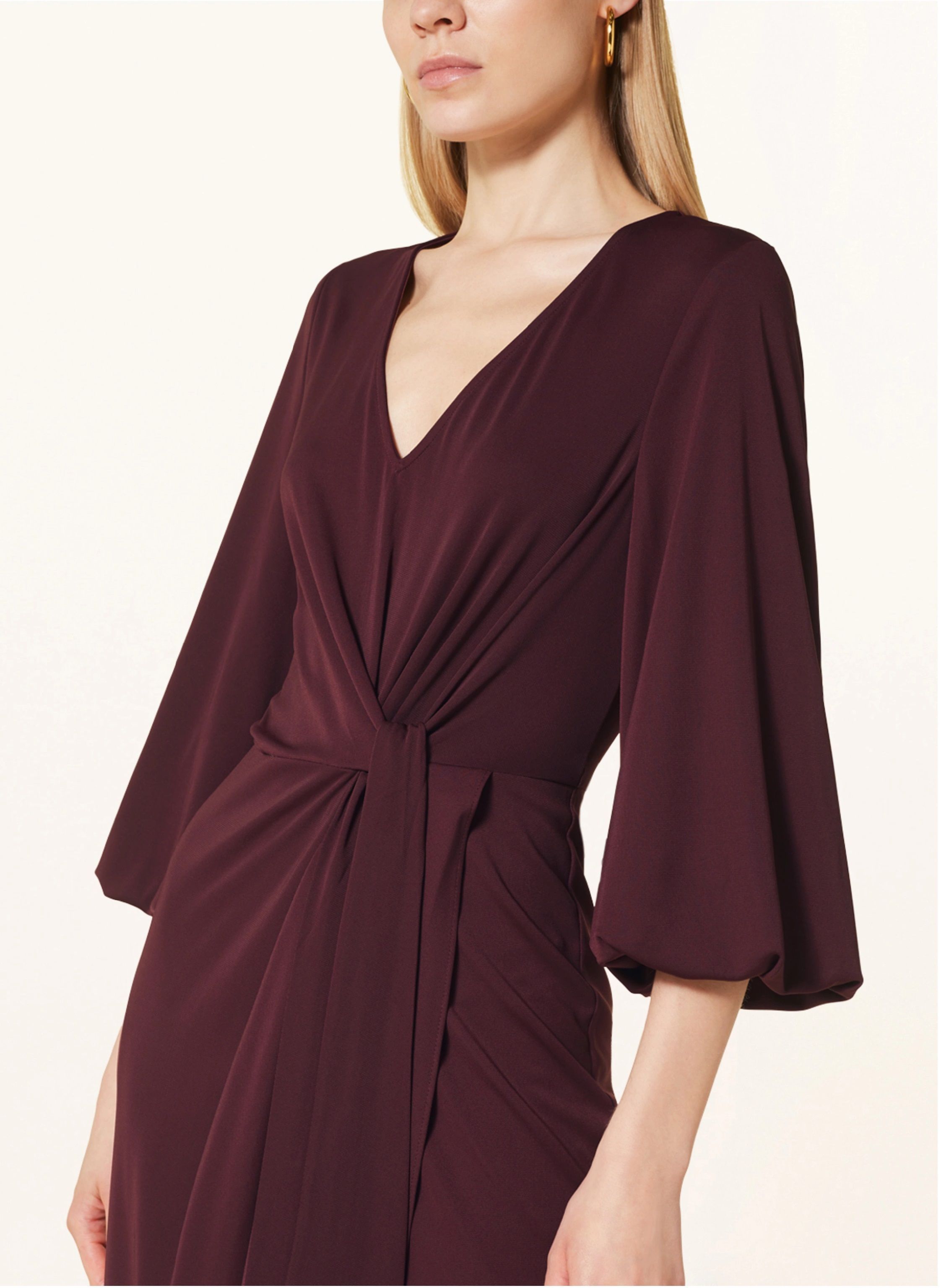 Φόρεμα stretch jersey με faux-δέσιμο / V-λαιμός / 3/4 μανίκια blouson / πιέτες μπροστά / λάστιχο στις μανσέτες / κρυμμένο φερμουάρ πίσω / midi /slim fit