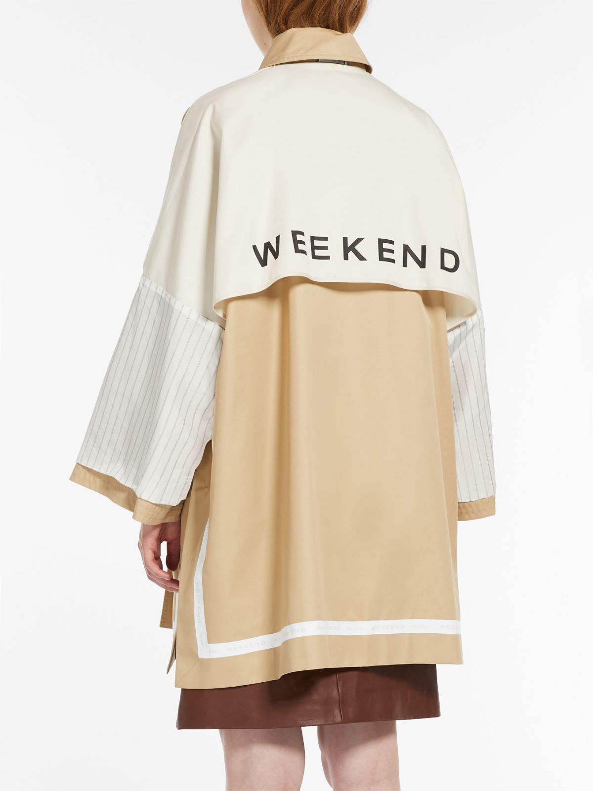 Καμπαρντίνα κοντή βαμβακερή διπλής όψης / logo WEEKEND στη πλάτη απο τη μία όψη / αδιάβροχη / γιακάς / μανίκια ρεγκλάν / διπλό κούμπωμα / πλαινές τσέπες / πλαινά κουμπιά στο τελείωμα
