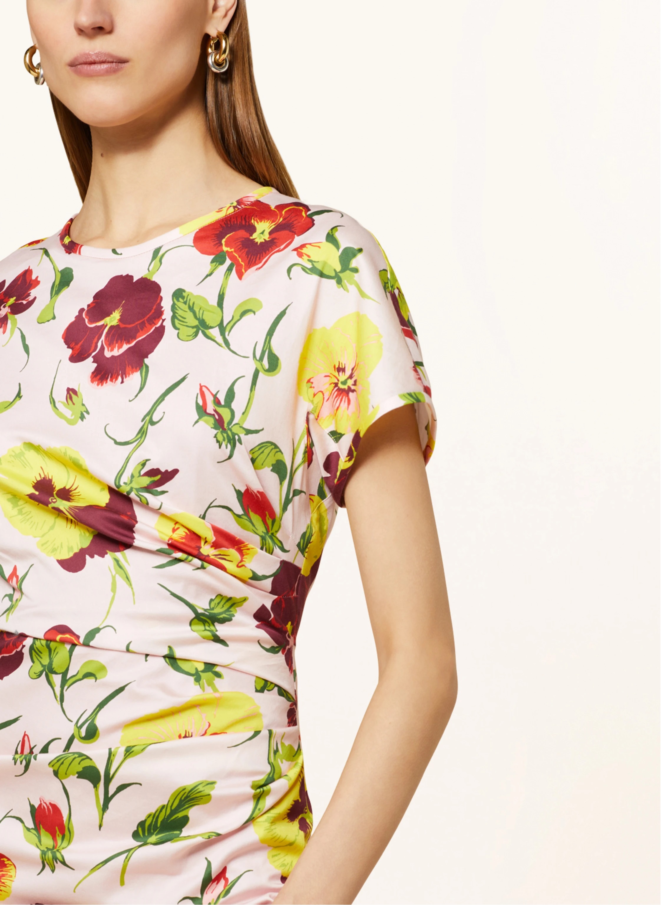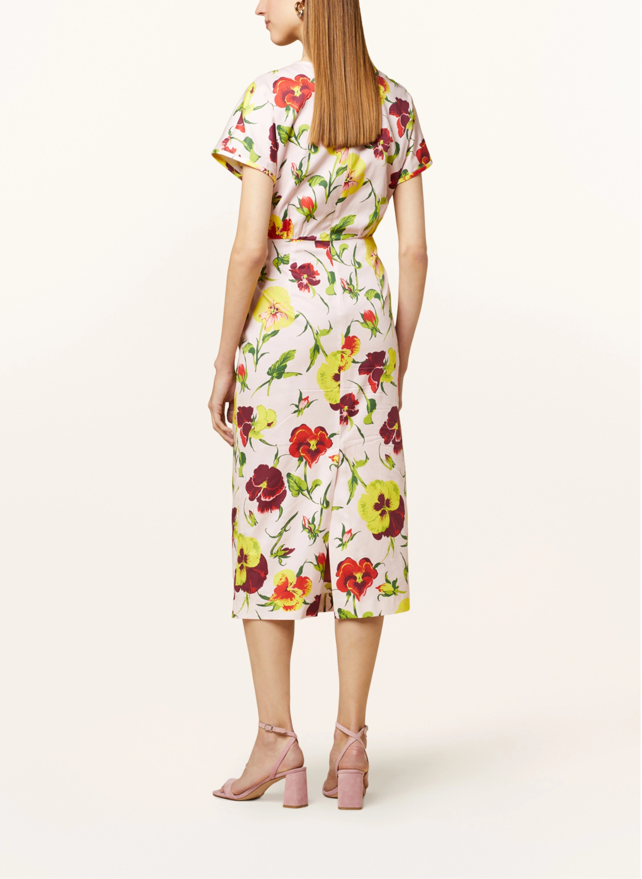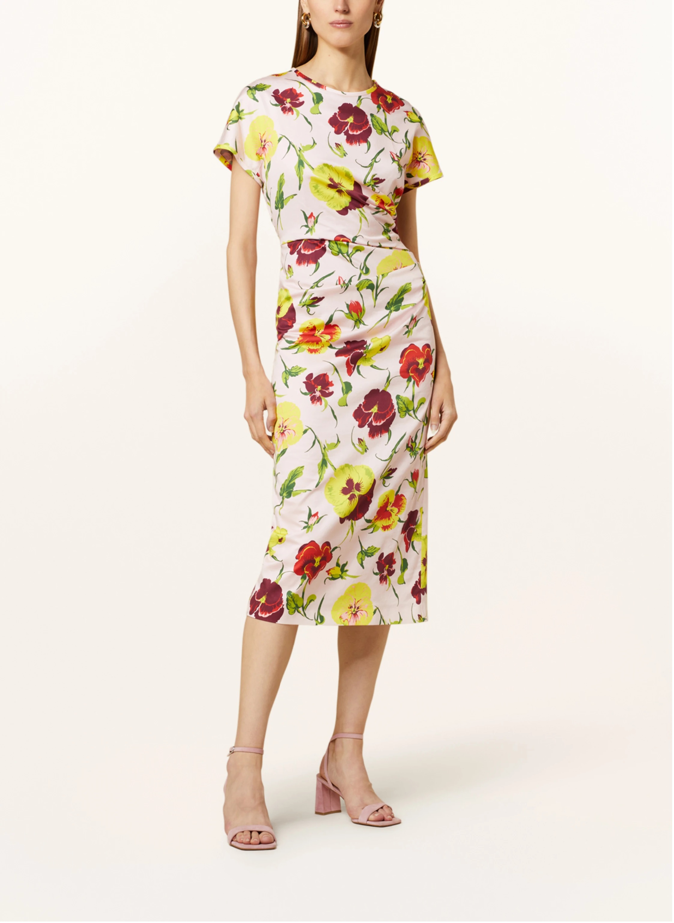 Φόρεμα φλοράλ βαμβακερό με πιέτες στο πλάι / μακρύ / λαιμόκοψη / κοντά μανίκια / κρυμμένο φερμουάρ πίσω / άνοιγμα πίσω στο τελείωμα / φόδρα / ίσια γραμμή