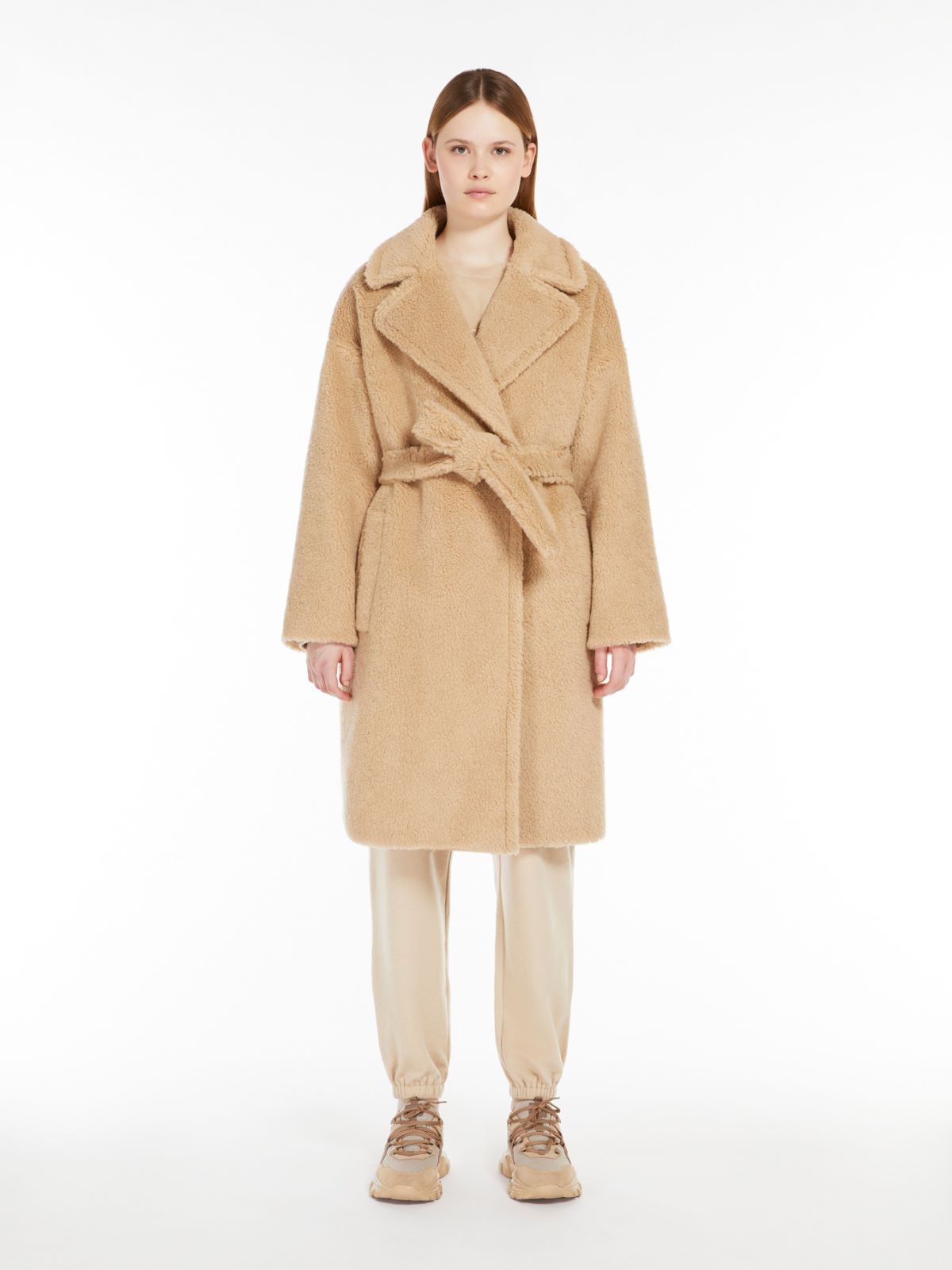 Παλτό robe από μαλακό μαλλί / ίσια γραμμή / κρυμμένο κουμπί μπροστά / μακριά μανίκια & χαμηλοί ώμοι / πλαινές τσέπες / φόδρα / ζώνη στη μέση