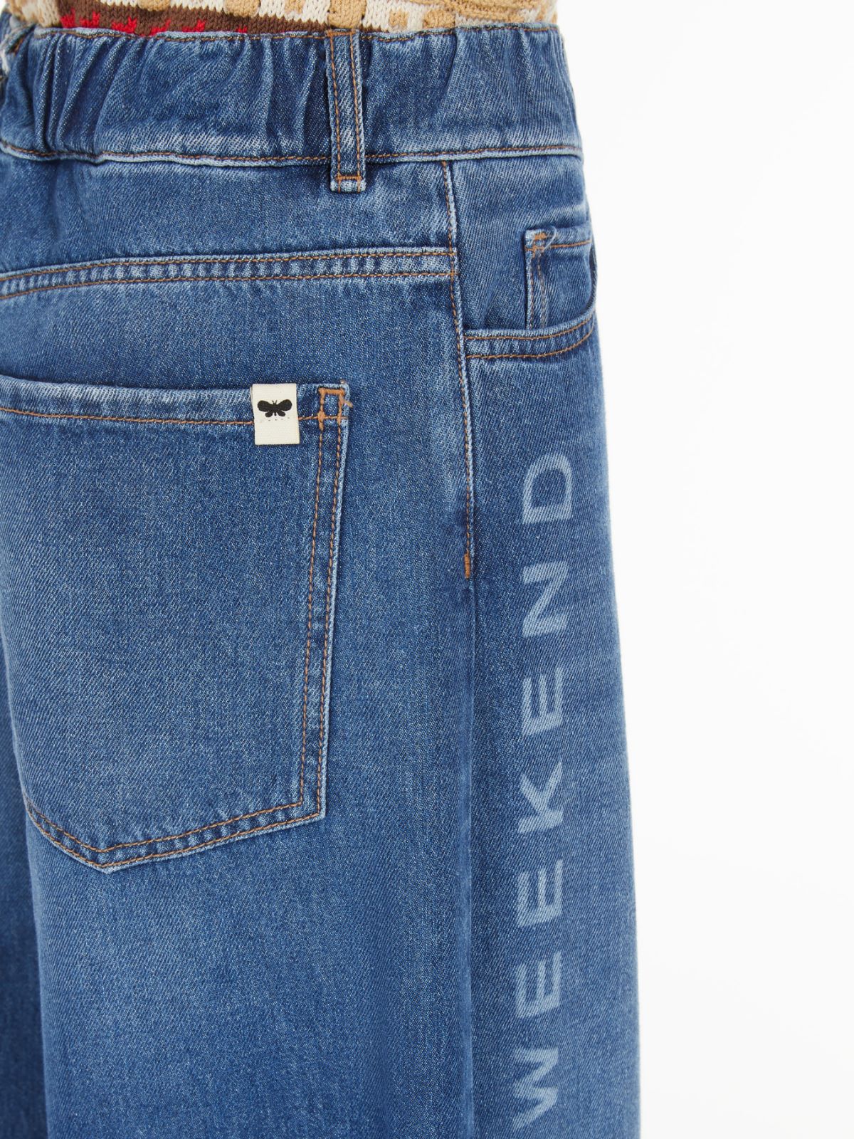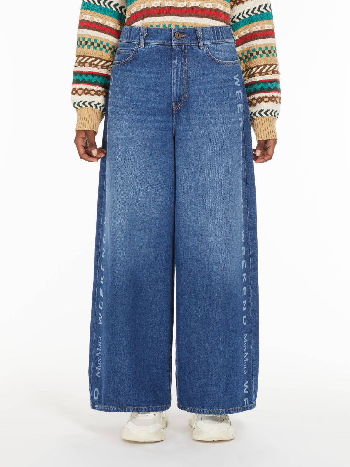 Τζιν απο αγνό μαλακό βαμβάκι φαρδύ στα πόδια & contrast γράμματα στα πλαινά με λέιζερ Weekend Max Mara / 5-τσέπες / ελαστική μέση / κούμπωμα με κουμπί & φερμουάρ / butterfly logo στη πίσω τσέπη